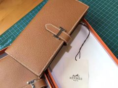 香港九龍城區黃埔愛馬仕 Hermes Bearn H扣長款兩折錢包Epsom CK37 Gold 金棕色銀扣