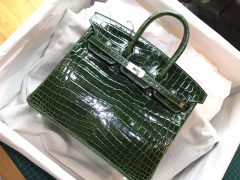 愛馬仕鉑金包 Hermes Birkin 25 光面鱷魚CK67 Vert Fonce祖母綠