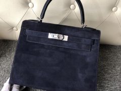 Hermes Kelly 28cm Sellier 外縫麂皮羊皮反絨 CK73寶石藍 Blue sapphire