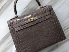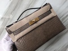 Hermès MiniKelly pochette亮面方塊美洲鱷 CK81斑鳩灰 Gris Tourterelle