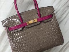 Hermes Birkin 30cm HSS CK81斑鳩灰拼 J5天方夜譚粉紫 HCP亮面倒V澳洲鱷