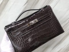 Hermès MiniKelly Pochette CK88石墨灰 Graphite美洲鱷Shiny alligator crocodile