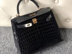 Hermes Kelly 25cm 尼羅鱷CK89黑色Noir 內拼Q5國旗紅Rose casaque 鍍24k金