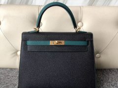 臺灣新竹市愛馬仕 Hermes Kelly 25cm Hss CK89黑色/Z6孔雀綠 Epsom 磨砂金扣 馬蹄印