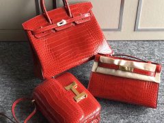 Hermes Birkin 25cm 亮面倒V 澳洲灣鱷 CK95法拉利紅 Braise Porosus Crocodile