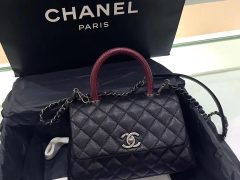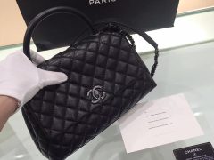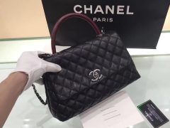 香奈兒coco handle bag中號28cm小牛皮魚子醬黑色復古手提包
