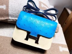 愛馬仕康斯坦斯包Hermes Constance 18(19)鴕鳥皮 2T 天堂藍 銀扣
