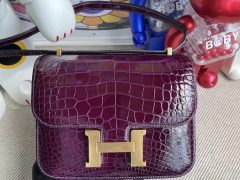 Britain Hermes Constance 18 亮面美洲鱷魚 L3 Rose Purple 玫瑰紫 金扣