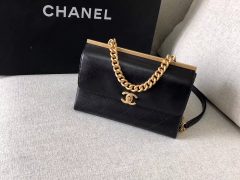 小香2018春夏系款 口蓋包Flap bag 黑色羊皮革 與金色金屬