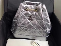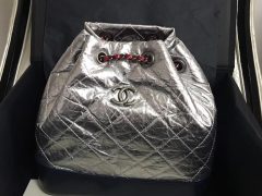 小香銀色金屬質感折紋小牛皮 gabrielle backpack bag雙肩背包