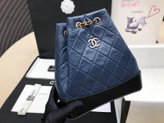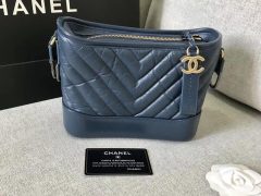 香奈兒 GABRIELLE小號流浪包 V型車縫線 海军藍色 復古小牛皮
