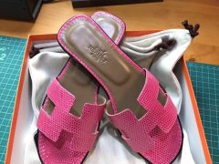 Hermes女士涼鞋 H型拖鞋蜥蜴皮 E5 Rose Tyrien糖果粉色 中跟 平底涼拖鞋