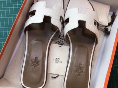 愛馬仕Hermes 女士涼鞋 H型拖鞋 鱷魚霧面White純白色 平底涼拖鞋