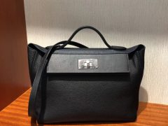 Hermes Kelly 24/24 bag 29cm PHW CK89 noir Taurillon Maurice/Swift calfskin