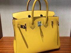 愛馬仕鉑金包包Hermes Birkin 25cm Bag epsom小牛皮 9D琥珀黃 Ambre 銀扣