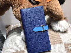 Hermes bearn兩折錢夾 西服夾 Epsom 7K寶石藍 2T天堂藍銀扣