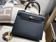 愛馬仕凱莉包Hermes Kelly 28cm Togo Nior CK89 經典百搭黑色金扣