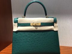 愛馬仕凱莉包包價格Hermes Kelly 32cm bag U4丝绒绿 鴕鳥皮Ostrich 銀扣