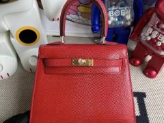 Hermès Kelly Mini 20 Sellier 大耳朵 Q5 Rose casaque 國旗紅 Lizard 進口蜥蜴皮