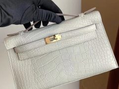 Hong Kong Hermes Mini Kelly Pochette i2 nata 奶油白 霧面方塊 美洲鱷魚