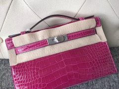 愛馬仕迷妳凱莉包壹代價格 Hermes MiniKelly pochette 美洲鱷 J5天方夜譚粉紫