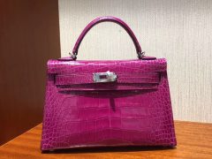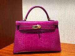 Malaysia HERMES MiniKelly2代 J5天方夜譚粉紫 亮面方塊 美洲鱷魚 银扣