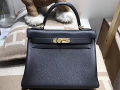 愛馬仕凱莉包Hermes Kelly 28cm Togo Nior CK89 經典百搭黑色金扣