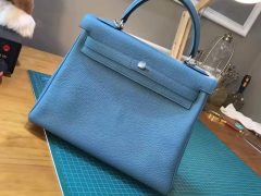 愛馬仕Hermes Kelly 28 togo J7 BlueLin 亞麻藍壹直會流行的顏色 銀扣