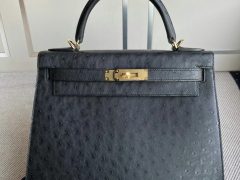 新加坡愛馬仕官網包包圖片 Hermes Price and pictures Kelly 28 Ostrich Noir 黑色金扣