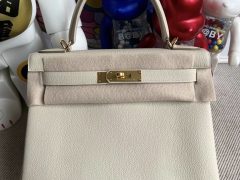 愛馬仕2022年刻印 U Hermes Kelly 28cm Togo 原廠小牛皮 10 Craie 奶昔白 GHW