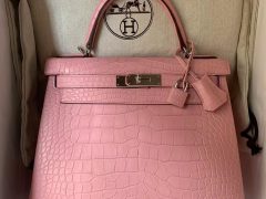 Hermes Kelly 28cm 3Q Rose Sakura 霧面美洲鱷魚 Matte Alligator Crocodile 銀扣