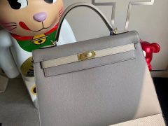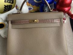 愛馬仕凱莉包32價格 Hermes Kelly 32 Touch Togo/鱷魚 18 Etoupe大象灰金扣