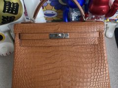 Hermes Kelly 32 霧面倒V鱷魚 Matte Porosus Crocodile 37 Gold金棕色銀扣