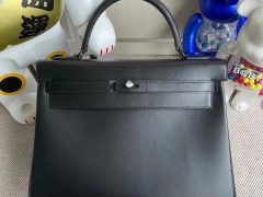Dhabi Hermes Kelly 32cm SO Black Box Retourne Black Hardware CK89 Noir