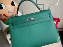 愛馬仕凱莉包32寸價格 Hermes Kelly 32 Epsom U4 Vert Verigo 絲絨綠 銀扣