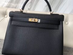 Hermes Kelly 32cm Togo Cow Cervicalis Lines CK89 Black 黑色