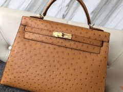 凱莉包鴕鳥皮多少錢 Hermes Kelly 32cm Ostrich 南非鴕鳥皮 CK37 gold 金棕色