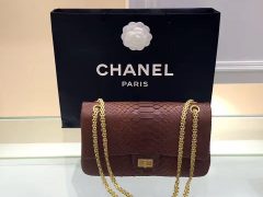 小香經典款女包大號Large 2.55 handbag口蓋包復古五金 咖啡真蟒蛇皮