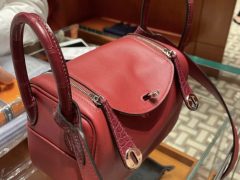Hong Kong Hermes Lindy mini Touch 美洲鱷魚 55 Rouge H 愛馬仕紅 銀扣