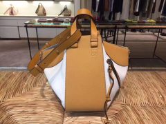 loewe Hammock手袋柔軟粒面小牛皮Medium Bag Soft White/Amber