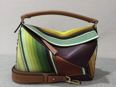 羅意威女包 loewe彩色糖果色Puzzle Wrap Bag Multicolor 配穿孔雙色納帕皮革條