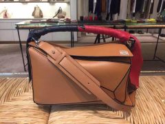 羅意威女包 loewe Puzzle Wrap Bag 棕色 配有穿孔雙色納帕皮革條