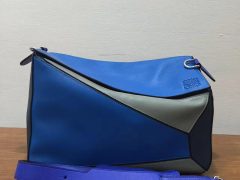 羅意威女包官網 LOEWE特大號 Puzzle Bag 深蓝色配灰色38cm 長方體形狀 折疊幾何包