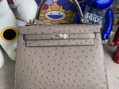 Hermes Kelly 25cm Ostrich 原廠KK 南非鴕鳥皮 M8 瀝青灰 Griss Asphalte 銀扣