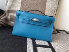 Hermes凱莉手包 mini kelly box 7W伊兹密尔蓝 Blue Lzmir 银扣 金扣金屬 手拿包
