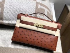 愛馬仕Hermes Mini kelly 鸵鸟皮 OSTRICH 4G 焦糖色 金扣