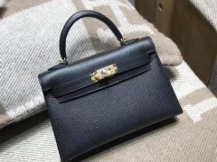 愛馬仕迷妳凱莉包 Mini kelly 2代 20cm epsom Nior黑色CK89 金扣