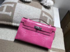 愛馬仕Hermes mini kelly 美洲鳄鱼皮革 密西西比鳄鱼 蜜桃粉 银扣