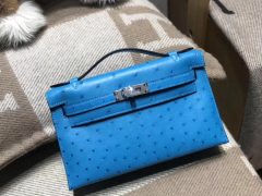 爱马仕Hermes mini kelly 鸵鸟皮 7B Turquoise松石蓝 银扣
