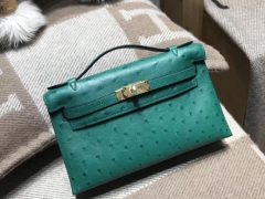 爱马仕Hermes mini kelly 鸵鸟皮 Z6 Malachite孔雀绿金扣